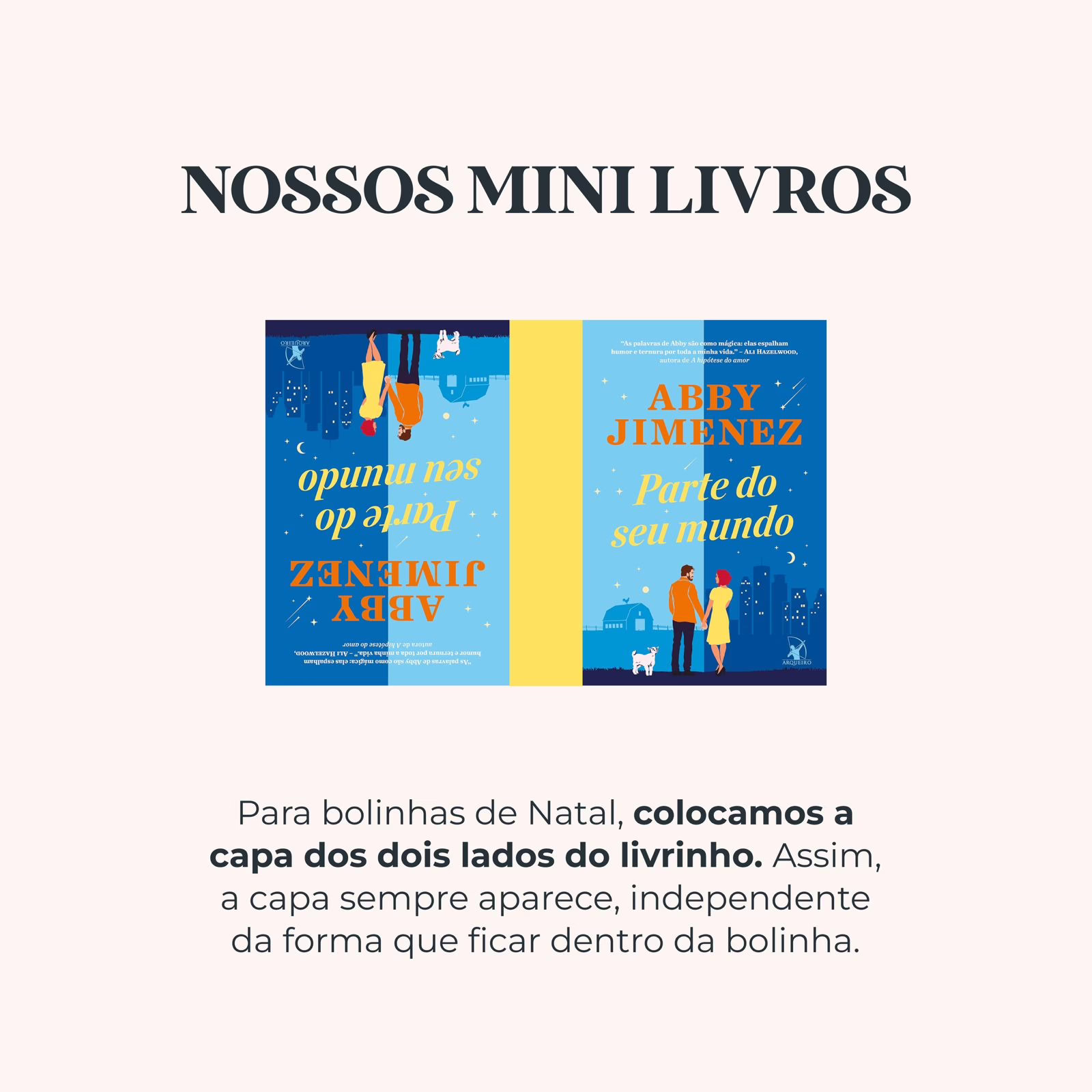 12 mini livros escolhidos por você decorando a parte interna da bola.